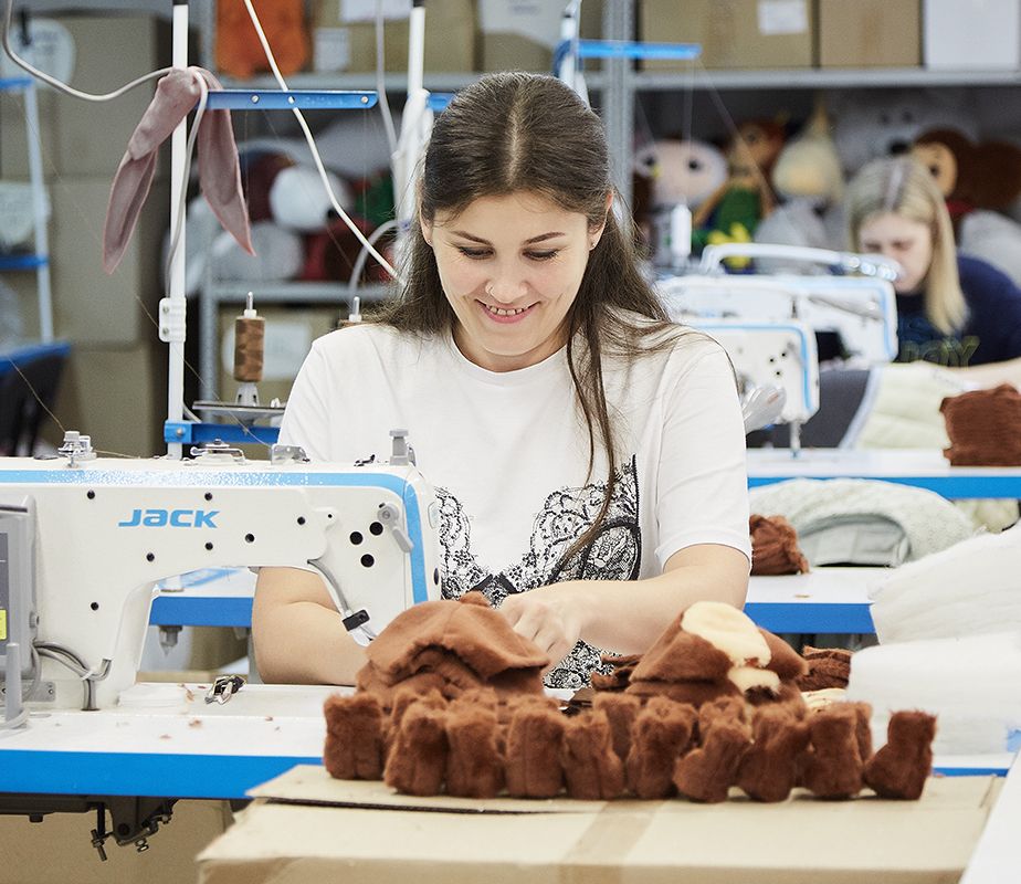 У нас собственника фабрика в Твери площадью 2700 м². Более 2 лет работаем как производство полного цикла: разрабатываем дизайн, шьем игрушки, постельное белье и одежду, упаковываем для доставки и продажи